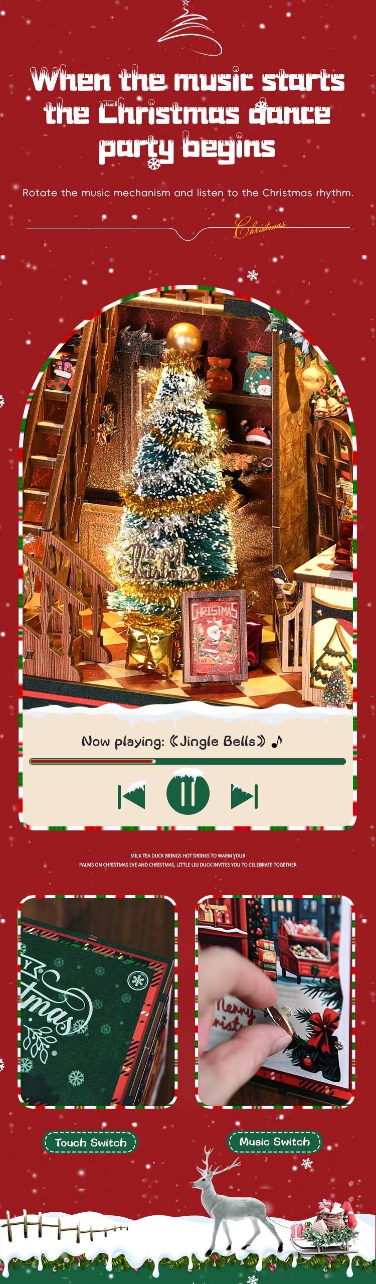 Turn the manual rotary mechanism to play a classic Christmas tune, adding seasonal charm and an immersive experience to your miniature mansion scene.