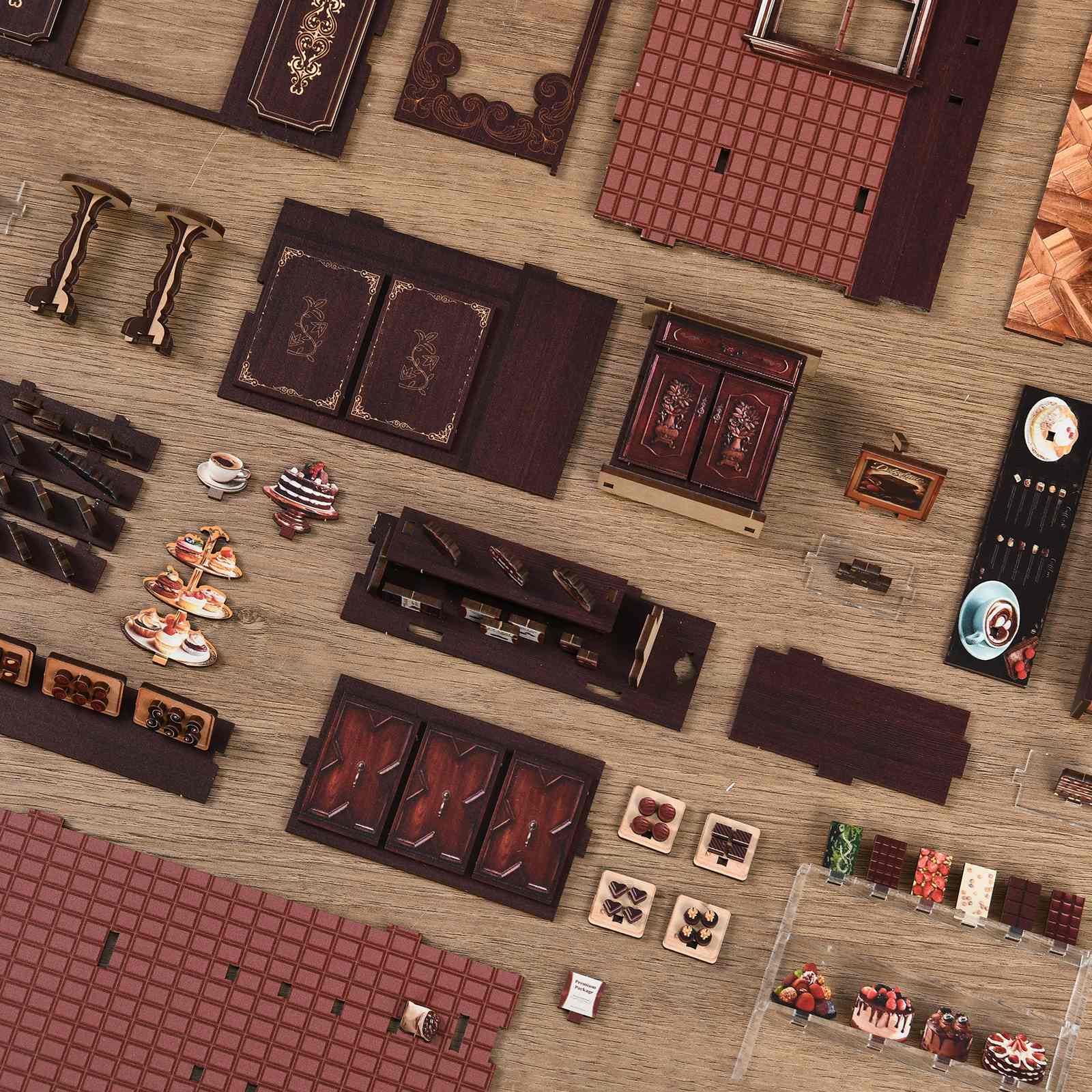This kit is designed for DIY lovers. With 189 pieces to assemble, it allows you to build your own sweet escape. The mortise and tenon assembly method ensures the structure is sturdy and the experience is rewarding as you create each element of the house, from the desserts to the decorative details.