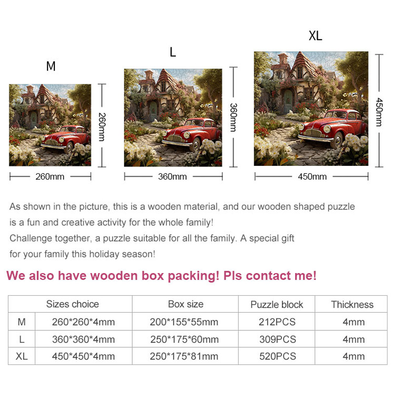 Unleash your imagination and challenge your mind with our Fairy Tale Jigsaw Puzzle, a beautifully crafted set of wooden jigsaw puzzles designed for both children and adults. Each piece is precision-cut from eco-friendly Poplar plywood using high-precision laser technology, ensuring every shape is unique and fits perfectly. These colorful puzzles are more than just a game—they are a journey into a world of mystery and creativity. Perfect for family activities, school projects, or as a custom puzzle gift, they provide hours of engaging fun for puzzle enthusiasts of all skill levels.